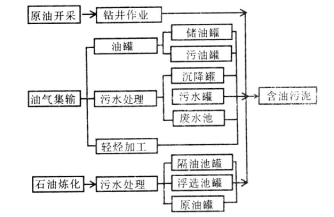 炼厂含油水处理设施、轻烃加工厂、天然气净化装置清除出来的油沙、油泥,钻井、油田作业、管线穿孔而产生的落地原油及含油污泥。油品储罐在储存油品时,油品中的少量机械杂质、沙粒、泥土、重金属盐类以及石蜡和沥青质等重油性组分沉积在油罐底部,形成罐底油泥。这些含油污泥本身成分复杂,含有大量的老化原油、蜡质、沥青质、胶体和固体悬浮物、细菌、盐类、酸性气体、腐蚀产物等,在污水处理过程中还加入了大量的凝聚剂、缓蚀剂、阻垢剂、杀菌剂等水处理药剂,也混于含油污泥中。